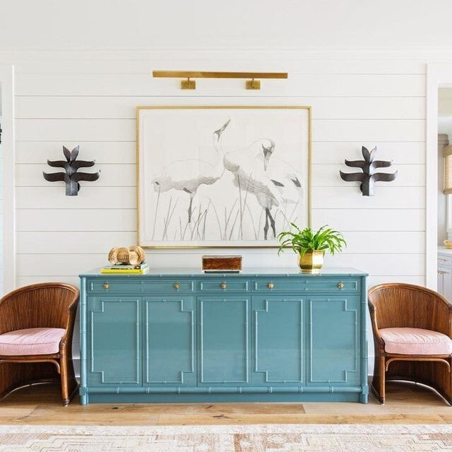El Visual Comfort McClain, diseñado por J. Randall Powers como parte de la Visual Comfort Signature Collection, es un aplique de montaje en pared con conexión fija diseñado con precisión para esta función. Con 42 pulgadas de anchura, está dimensionado para lienzos de gran formato, espejos protagonistas y conjuntos de piezas en pared. La delgada barra horizontal oculta la fuente de luz tras una apertura orientada hacia abajo, proyectando una iluminación controlada y direccional a lo largo de toda la anchura de la pieza. Con clasificación IP20, es apto para interiores secos.
